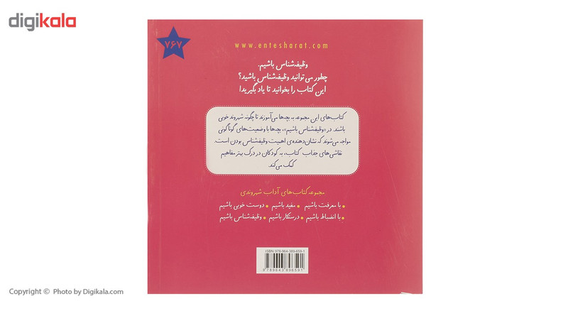 کتاب «وظیفهشناس باشیم» نوشتهی «کاسی مایر» را «محمدرضا بهاری» به فارسی برگردانده است. این کتاب در مجموعه کتابهای «آداب شهروندی» و برای ارتقای مهارتهای اجتماعی در کودکان برای کودکان گروه سنی (الف) و (ب) تدوین شده است. در توضیح پشت جلد کتاب آمده است: «وظیفهشناس باشیم. چطور میتوانید وظیفهشناس باشید؟ این کتاب را بخوانید تا یاد بگیرید! کتابهای این مجموعه به بچهها میآموزند تا شهروند خوبی باشند. در "وظیفهشناس باشیم"، بچهها با وضعیتهای گوناگونی مواجه میشوند که نشاندهندهی اهمیت وظیفه شناس بودن است. نقاشیهای جذاب کتاب، به کودکان در درک بهتر مفاهیم کمک میکند.» کتاب حاضر را انتشارات «فنی ایران» منتشر کرده و در اختیار مخاطبان قرار داده است.